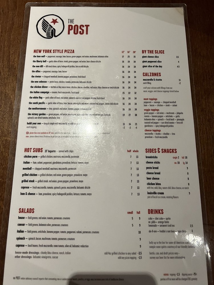 Introducing The Post, a vibrant culinary haven located in Louisville, Kentucky, where the motto is fresh, fun, and flavor-packed. Specializing in an eclectic mix of salads, pizzas, and bars, The Post stands out with its commitment to quality and variety, offering something for everyone, including vegan options.